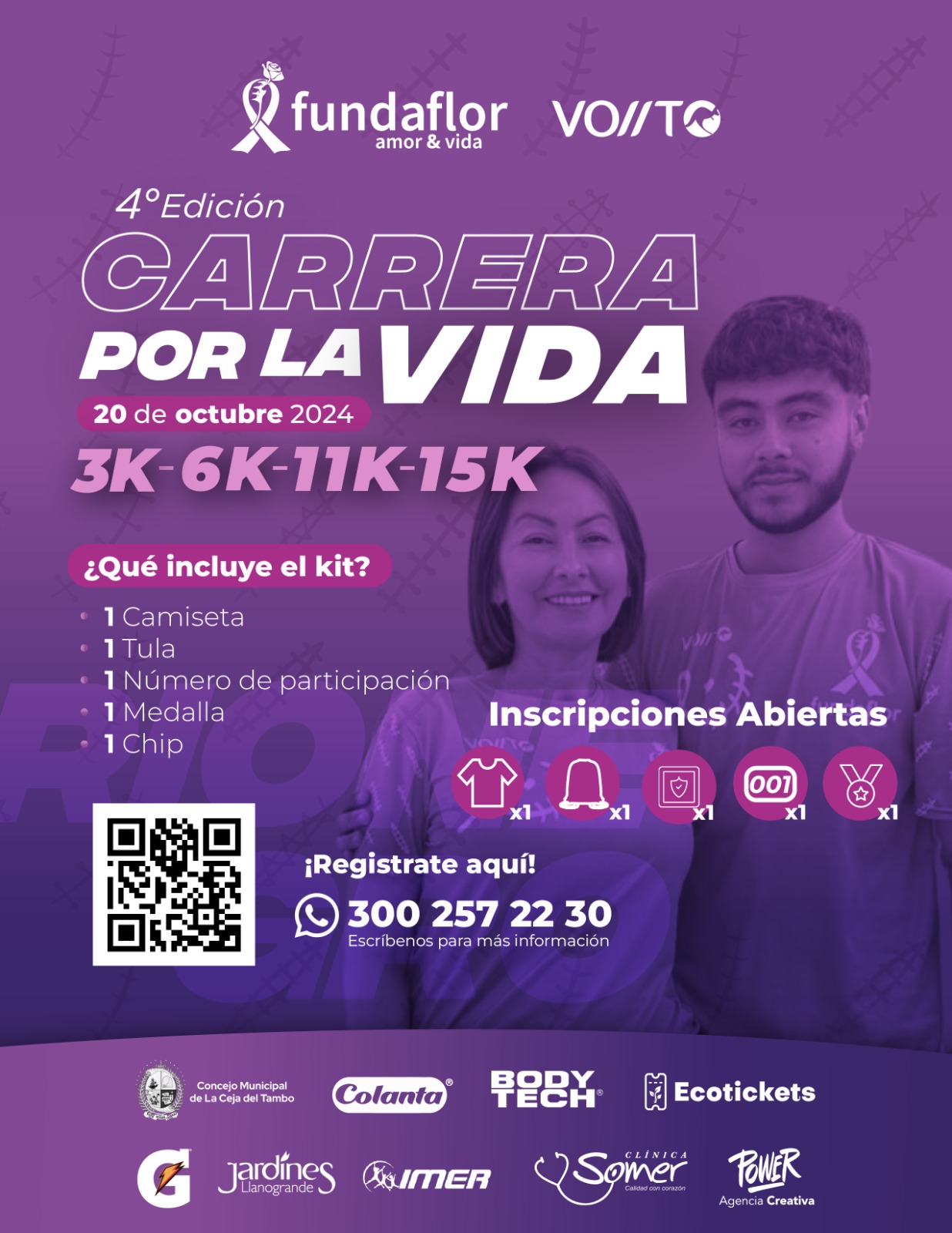 Inscripciones abiertas para la 4ª Carrera por la Vida, que se llevará acabo en el centro comercial Jardines de Llanogrande, este próximo 20 de octubre.